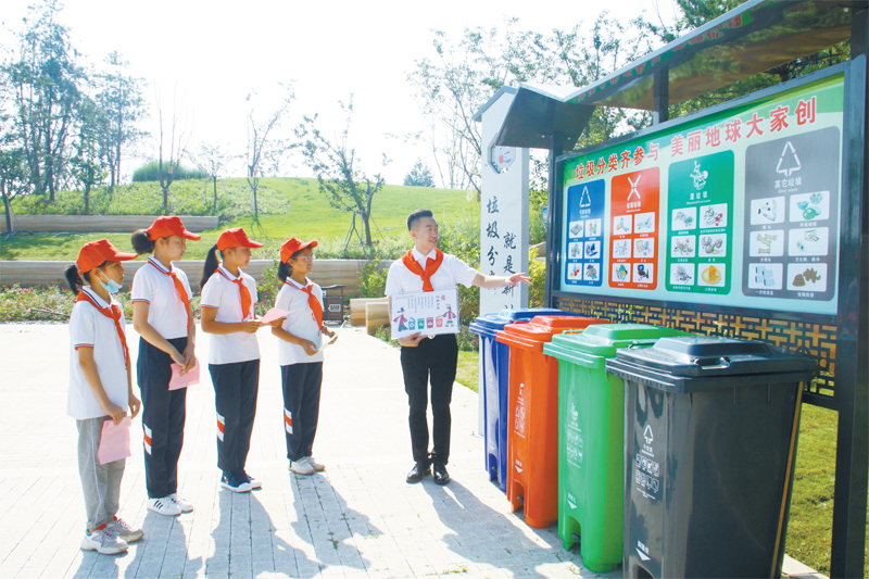 日前,潞州区暴马学校部分教师、学生及家长40余人走进漳泽湖国家城市湿地公园开展“创建全域文明城市,建设美丽幸福长治”志愿服务活动,通过各种形式的宣传,倡导游客文明旅游。(梁栋 摄)