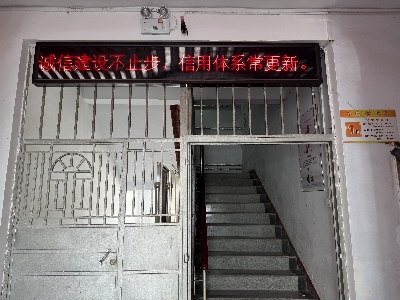 2025年8月20日,平顺县民政局在楼道显示屏开展诚信体系建设宣传。