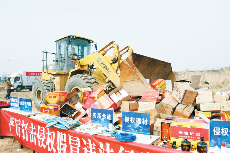 图为假冒伪劣物品集中销毁活动现场。 记者 张国平 摄