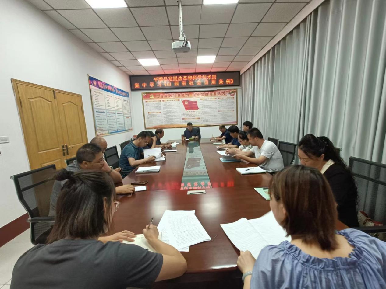 为贯彻落实《山西省社会信用条例》的学习宣传,平顺县发展改革和科学技术局全体人员集中学习,会议认真解读了《条例》的内容,并向全体人员普及了信用知识。经此会议,大家对社会信用知识认知明显提高,作为公民应时刻管关注自己的信用记录,以防不良信用记录的产生。通过此次宣讲活动,不仅增强了社会公众信用意识,还进一步树立了《条例》的权威性。