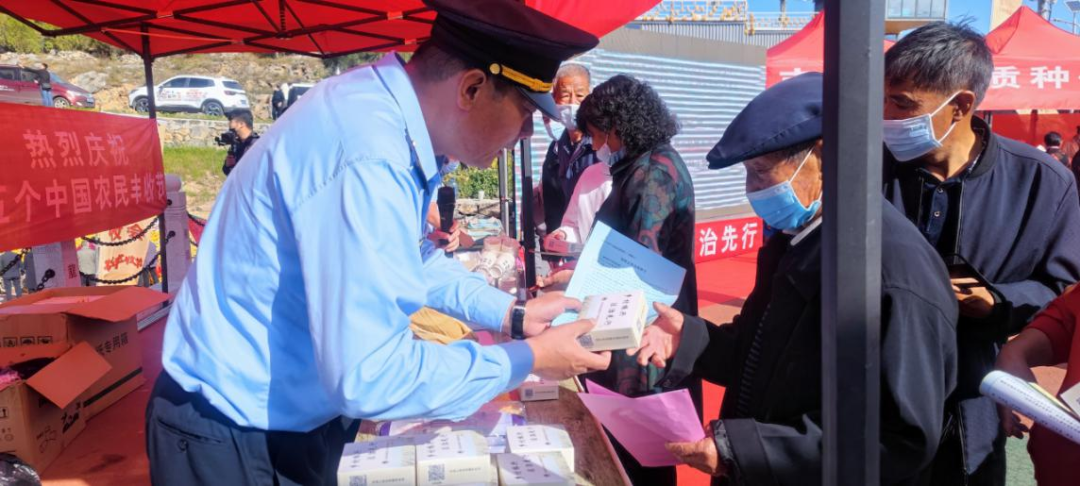 九月的平顺大地田畴沃野、五谷蕃熟,处处洋溢着欢庆丰收的喜悦。9月23日,我市第五个中国农民丰收节在平顺县龙溪镇龙镇村举办,市委副书记丁利军,市委农办主任、市农业农村局局长秦志云莅临丰收节活动现场法治宣传展区,听取了“2022年‘乡村振兴 法治先行’法律宣传暨优质品种成果展示活动”举办的相关情况汇报,对优质品种成果展区展示的“2022年度市农业农村局主推优质品种成果”驻足观看,对本次活动给予了充分的肯定。特别是秦局长亲自参与宣传活动,发放宣传品,现场向农民朋友了解今年种植收获情况,他指出:中国农民丰收节是第一个在国家层面专门为农民设立的法定节日,要借助每年丰收节举办的契机,做实做细丰收节系列活动。一要做好宣传引导。创新宣传模式,丰富活动内容,多利用群众喜闻乐见的形式进行宣传,将我市“三农”干部队伍的新形象宣传好,将我市农业执法的新面貌展示好,让法律宣传活动取得实实在在的效果。二要压实宣传责任。将“谁执法谁普法”普法责任制落实到日常执法工作中,做到普法在前执法在后,畅通普法宣传“最后一公里”,引导农民群众知法、学法、守法、用法,不断提升农民群众的法治意识。三要严查违法行为。严厉查处制售假劣农资现象,严厉打击坑农害农违法行为,筑牢粮食生产“生命线”,稳定粮食安全“基本盘”,让百姓真正感受到年年都是丰收年,年年都能享受丰收喜悦感。