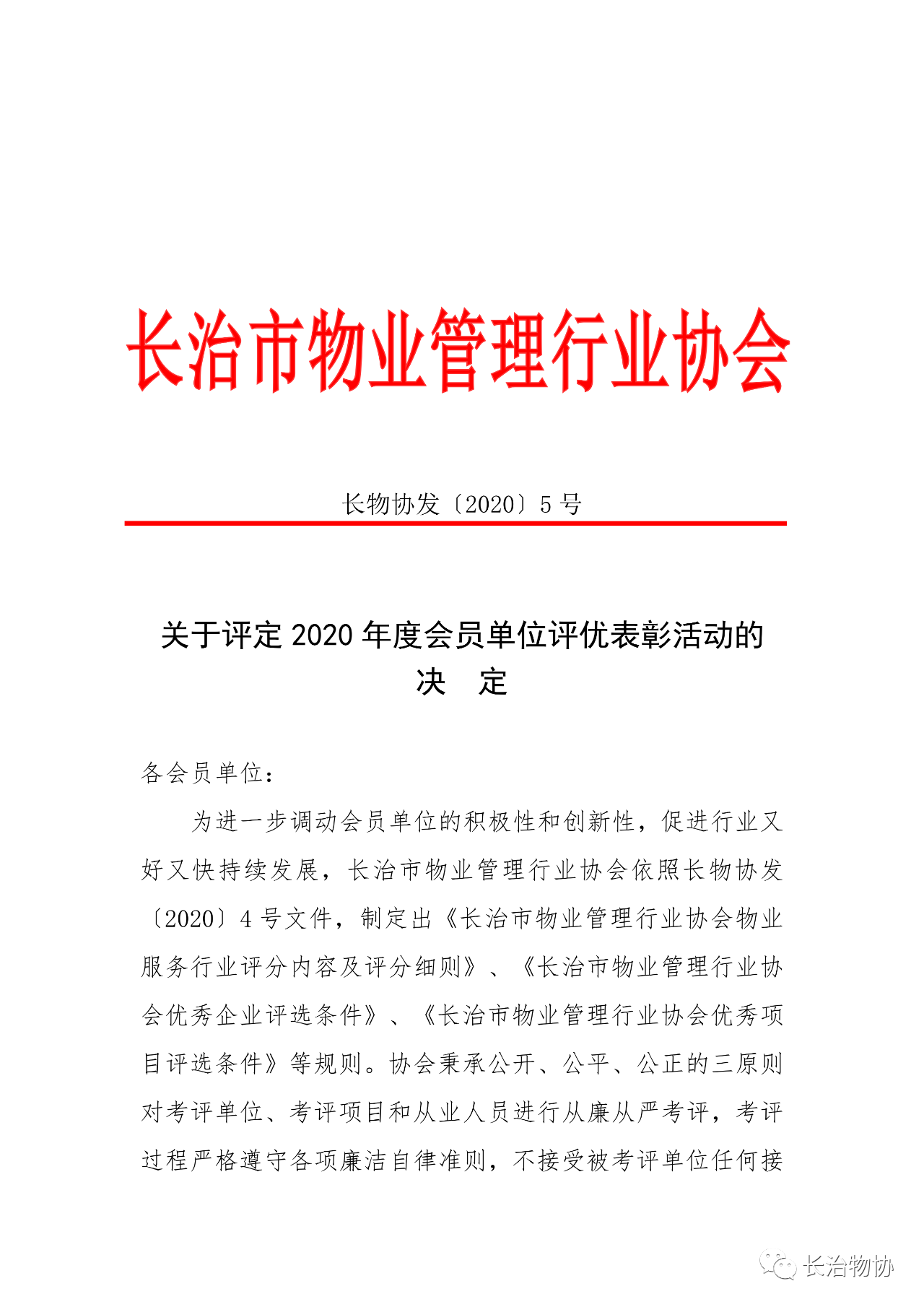 官宣:关于评定 2020 年度会员单位评优表彰活动的决定