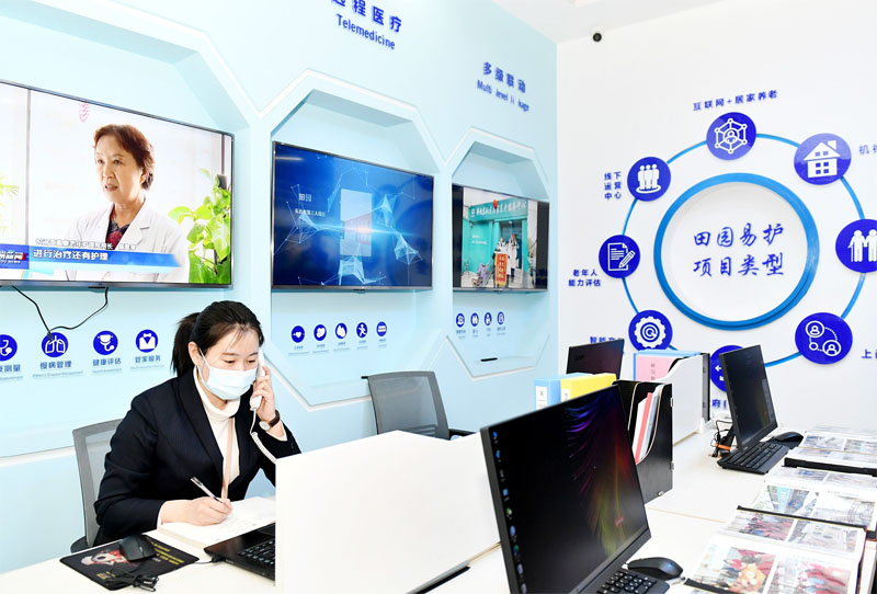 3月15日,在潞州区城市社区居家养老服务中心内,12349民政公益热线服务平台的工作人员正在接听热线电话。12349民政公益热线推行“一刻钟便民服务圈”,运营方田园易护智慧养老云平台与800余家服务商签订协议,可24小时为老年人、弱势群体提供生活照料、家政服务等上百项与日常生活息息相关的优质服务。记者 徐翔 摄