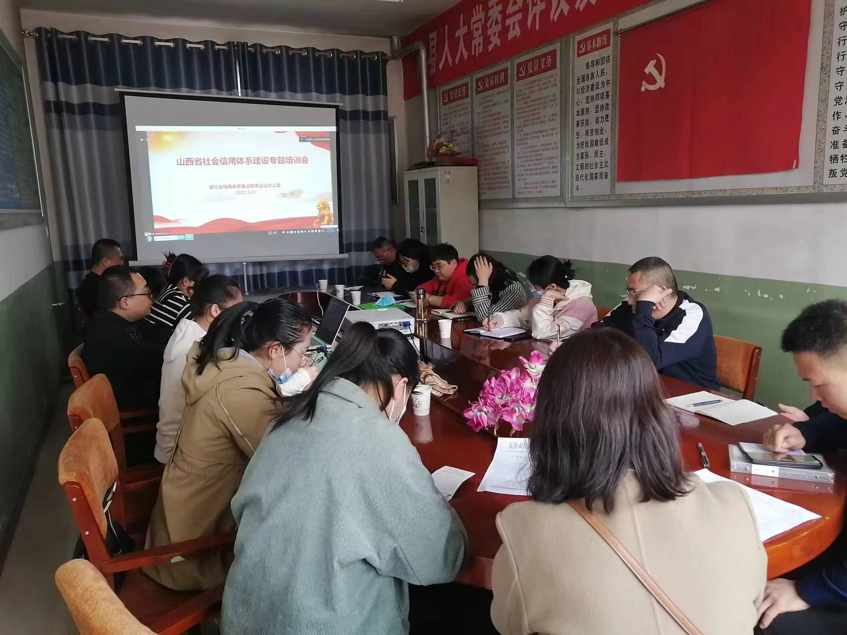 按照市发改委《关于参加全省社会信用体系建设专题培训会的通知》要求,2023年3月21日,沁县发展和改革局在局二楼会议室设分会场,组织全县24家单位信用工作业务人员参加了全省社会信用体系建设专题培训。