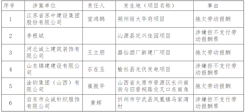 山西公布2022年度首批6起拖欠劳动报酬案件!