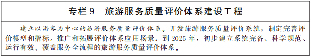 到2025年,旅游业发展水平不断提升,现代旅游业体系更加健全,旅游有效供给、优质供给、弹性供给更为丰富,大众旅游消费需求得到更好满足。疫情防控基础更加牢固,科学精准防控要求在旅游业得到全面落实。国内旅游蓬勃发展,出入境旅游有序推进,旅游业国际影响力、竞争力明显增强,旅游强国建设取得重大进展。文化和旅游深度融合,建设一批富有文化底蕴的世界级旅游景区和度假区,打造一批文化特色鲜明的国家级旅游休闲城市和街区,红色旅游、乡村旅游等加快发展。旅游创新能力显著提升,旅游无障碍环境建设和服务进一步加强,智慧旅游特征明显,产业链现代化水平明显提高,市场主体活力显著增强,旅游业在服务国家经济社会发展、满足人民文化需求、增强人民精神力量、促进社会文明程度提升等方面作用更加凸显。