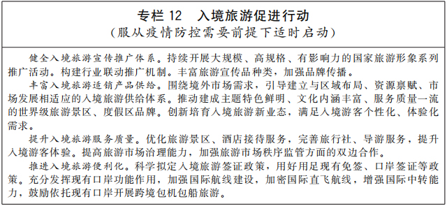 与旅游客源国、客源地在国际航运、边境通行、疫苗接种、旅游团队组织、医疗保险等方面加强沟通,本着对生命健康高度负责的态度,始终坚守安全底线,把疫情防控放在首位,严格执行国际客运航班“熔断”措施,动态精准调整来华人员入境政策。科学制定并实施入境旅游疫情防控技术指南,强化入境旅游接待重点人员、重点场所防控,严格落实门票实名制预约制度。在此基础上,稳妥推进外籍(境外)人员来华邮轮旅游、自驾游便利化和通关便利化,进一步提升入境服务水平,优化境外预订、金融支付、网络服务、语言标识等,让来华游客在用卡、用网、用餐等方面更顺畅、更舒心。抓紧推进《中俄互免团体旅游签证协定》等修订工作。加快实现全国旅游监管服务平台与边检查验系统对接。提升购物离境退税服务水平,扩大购物离境退税政策覆盖面,鼓励更多商户自愿成为退税商店,丰富商品种类。健全免税业政策体系,促进我国免税业健康有序发展。继续办好中国国际旅游交易会、中国—东盟博览会旅游展等品牌推广活动。