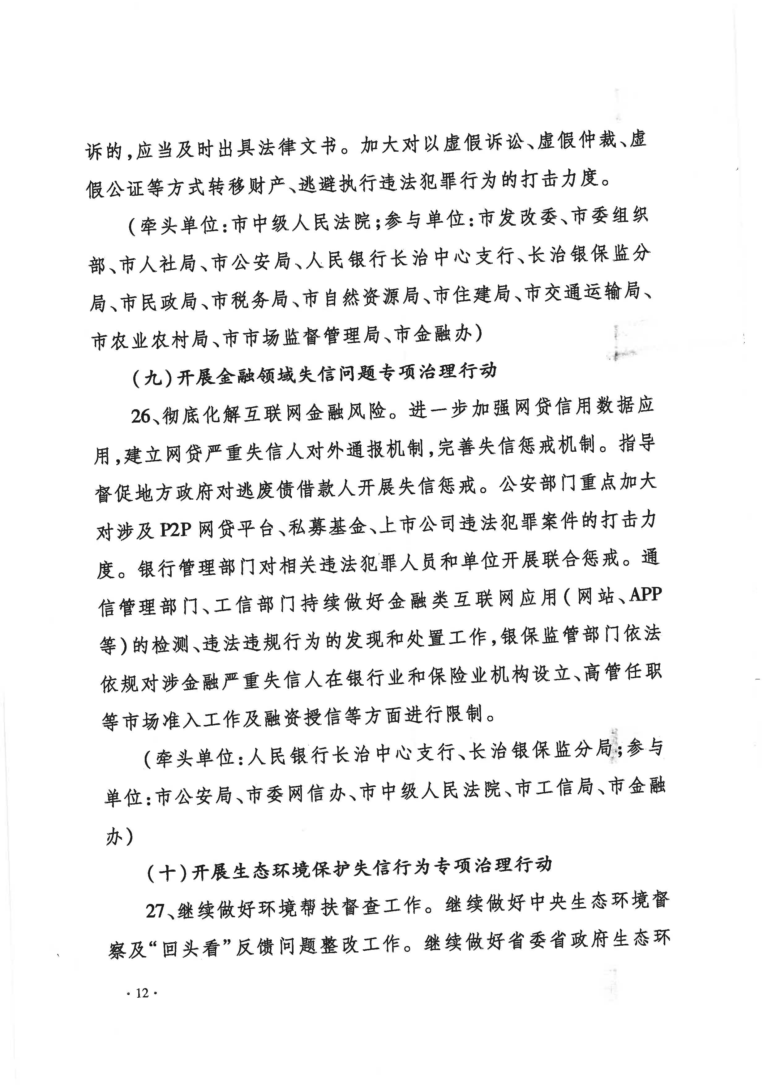 长治市文明委印发《关于开展诚信缺失突出问题专项治理行动的实施方案》的通知