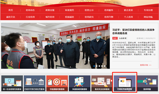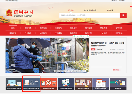 1.    在信用中国网站首页打开“行政许可和行政处罚查询”模块。