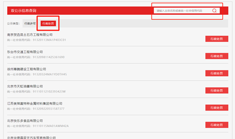 2.    点开后下拉至底部,选择行政处罚进行查询。
