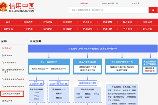 所有信用修复均不得向企业或单位收取费用。涉及严重失信的处罚主体可通过“信用中国”网站公益性在线培训平台学习后获得培训合格证。