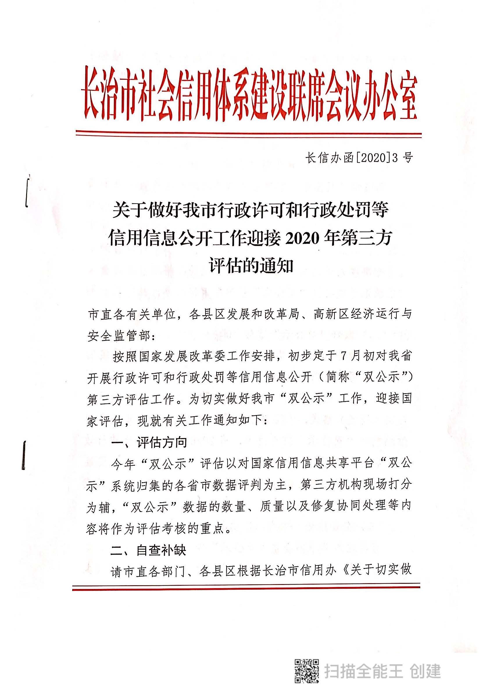 关于做好我市行政许可和行政处罚等信用信息公开工作 迎接2020年第三方评估的通知