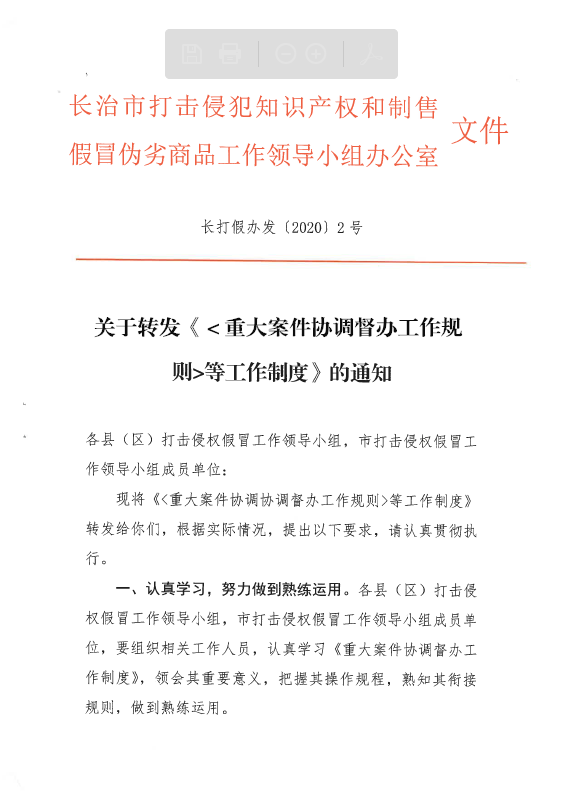 关于转发《<重大案件协调督办工作规则>等工作制度》的通知