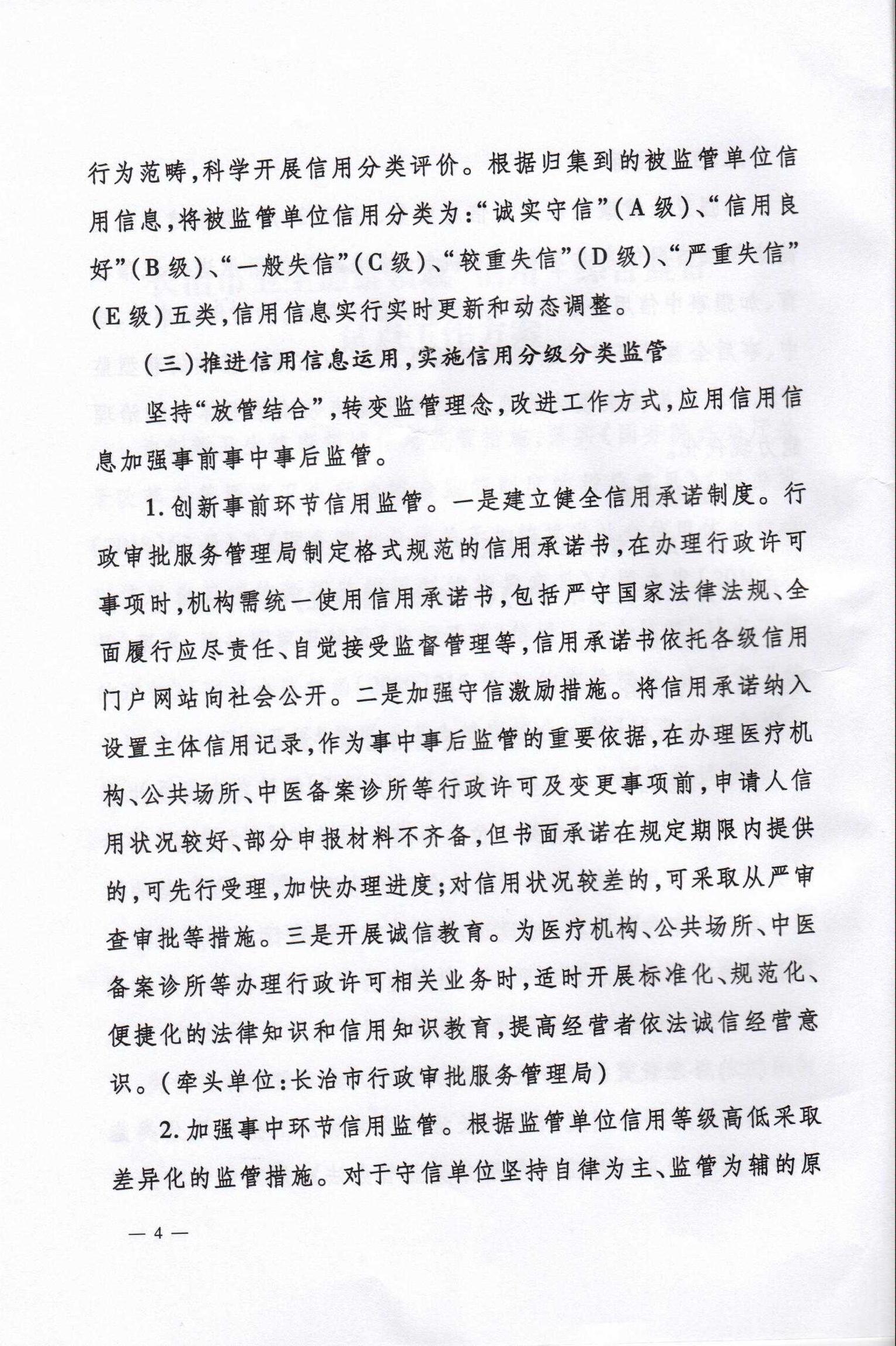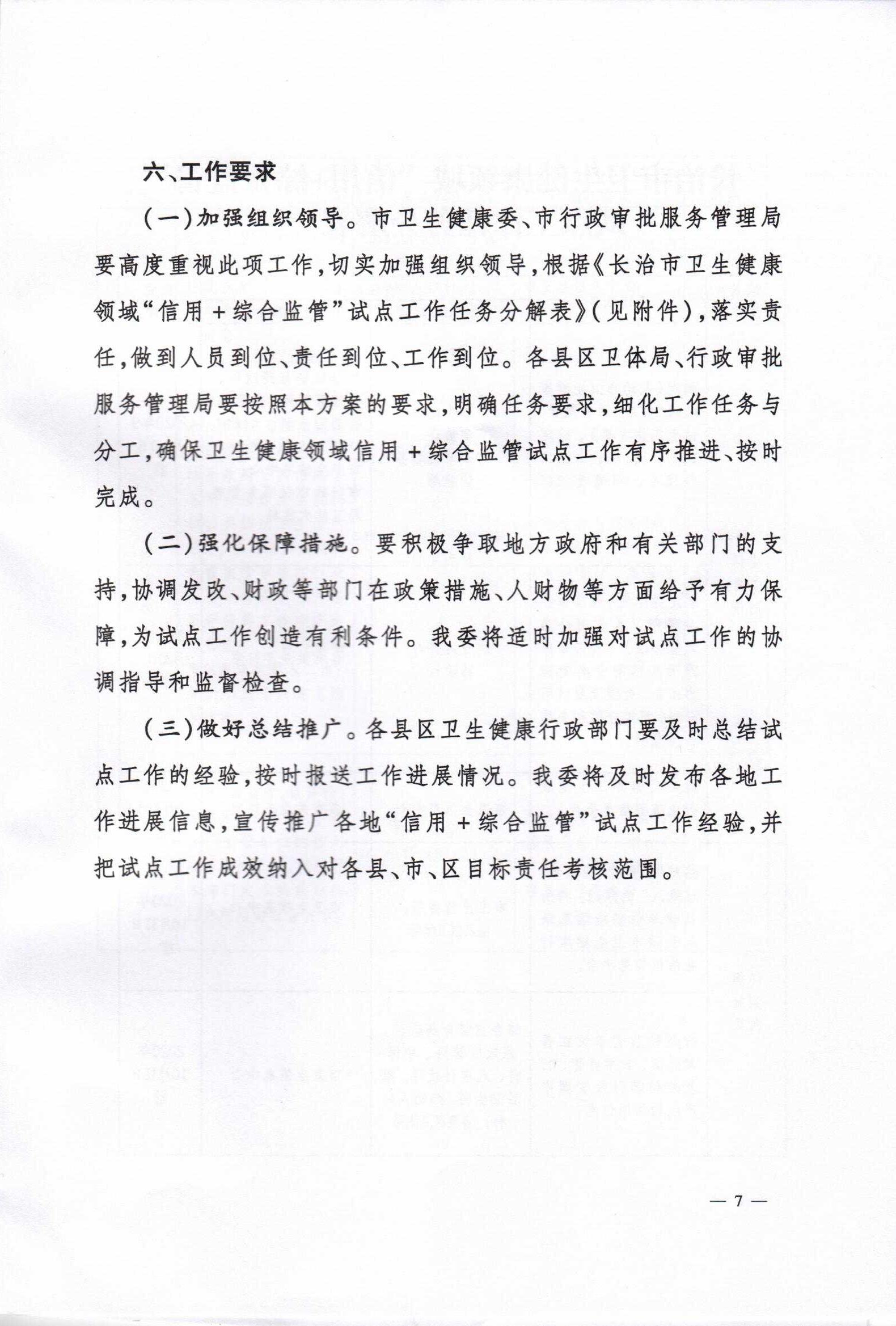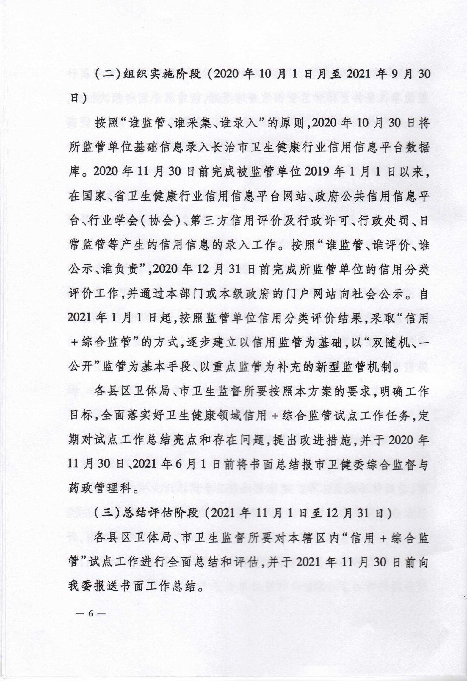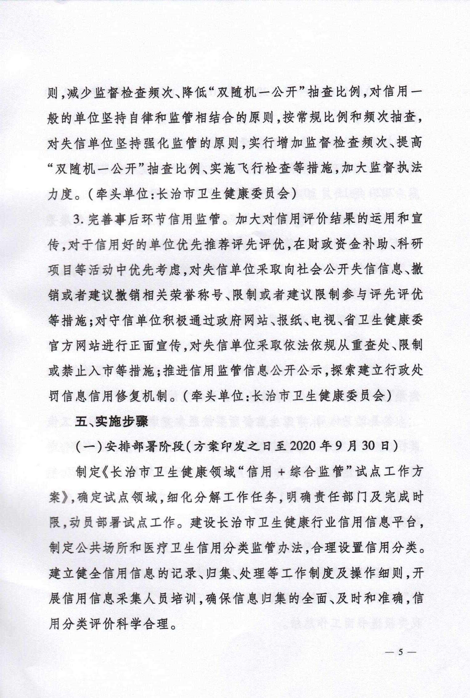 长治市卫生健康委员会 长治市行政审批服务管理局关于印发《长治市卫生健康领域“信用+综合监管”试点工作的实施方案》的通知