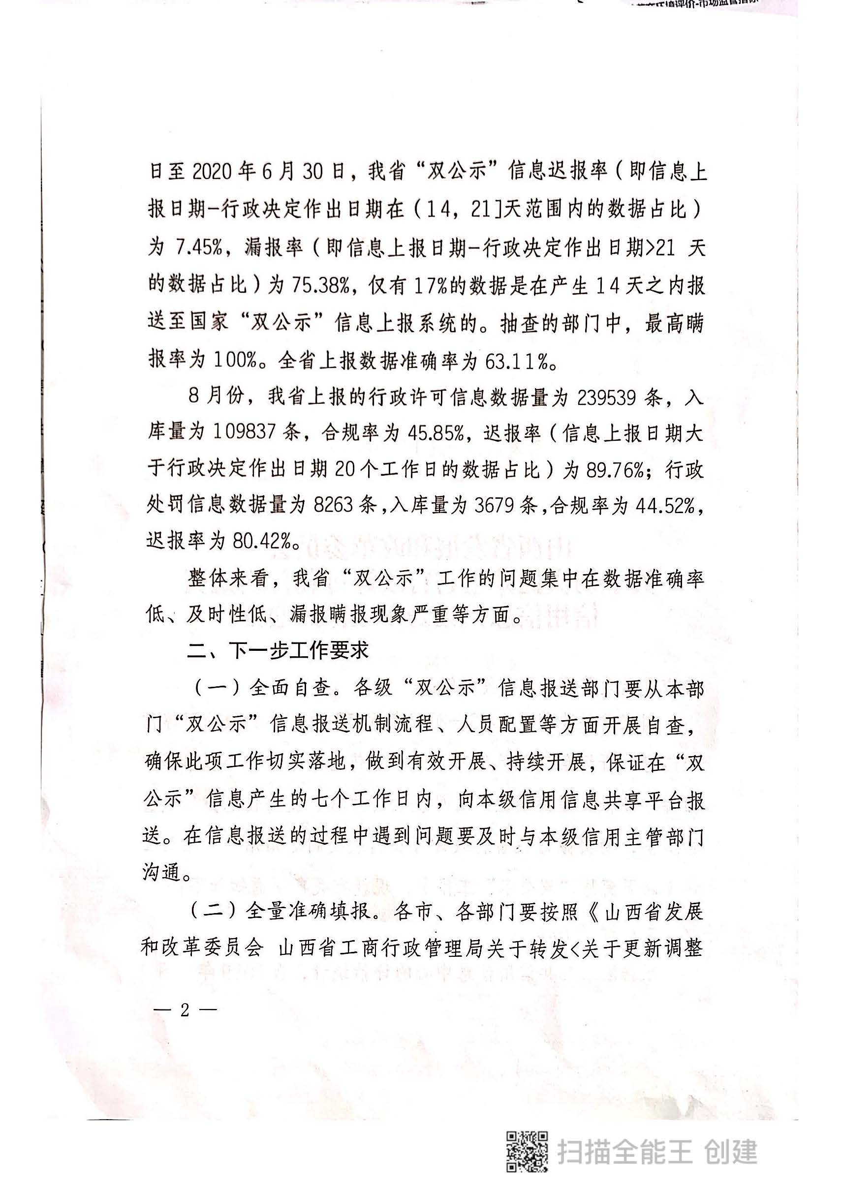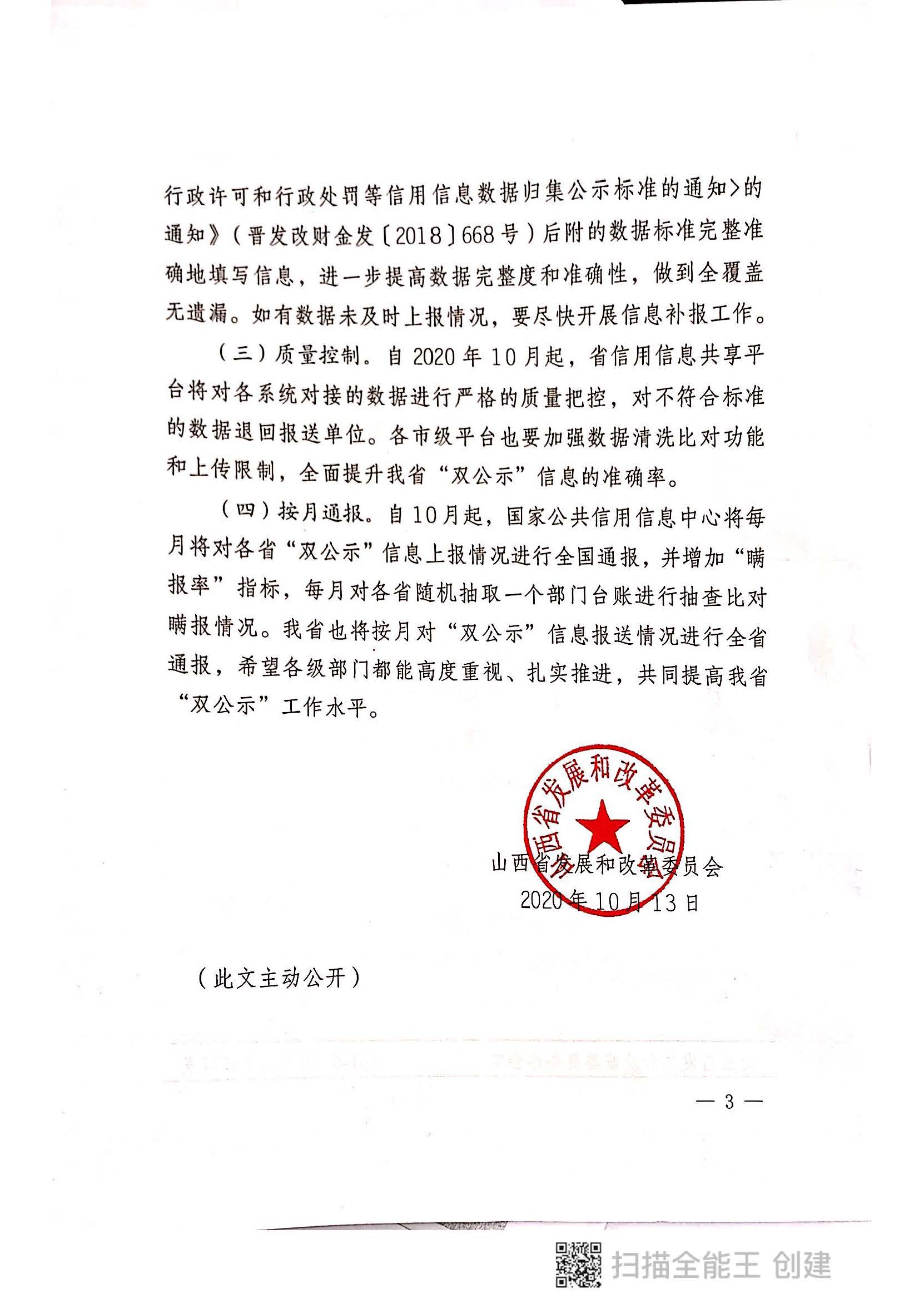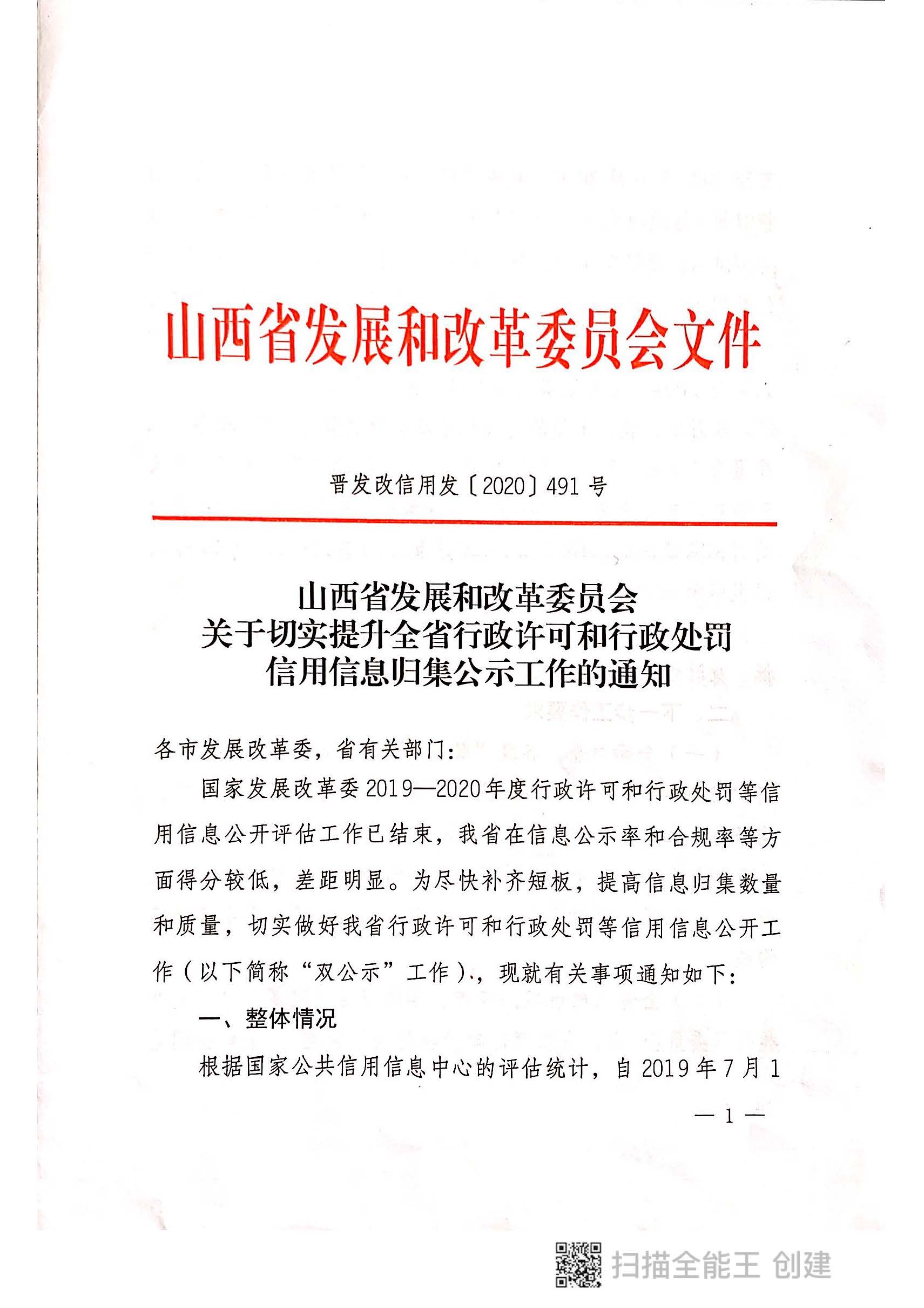 附件:山西省发改委《关于切实提升全省行政许可和行政处罚信用信息归集公示工作的通知》晋发改信用发〔2020〕491号