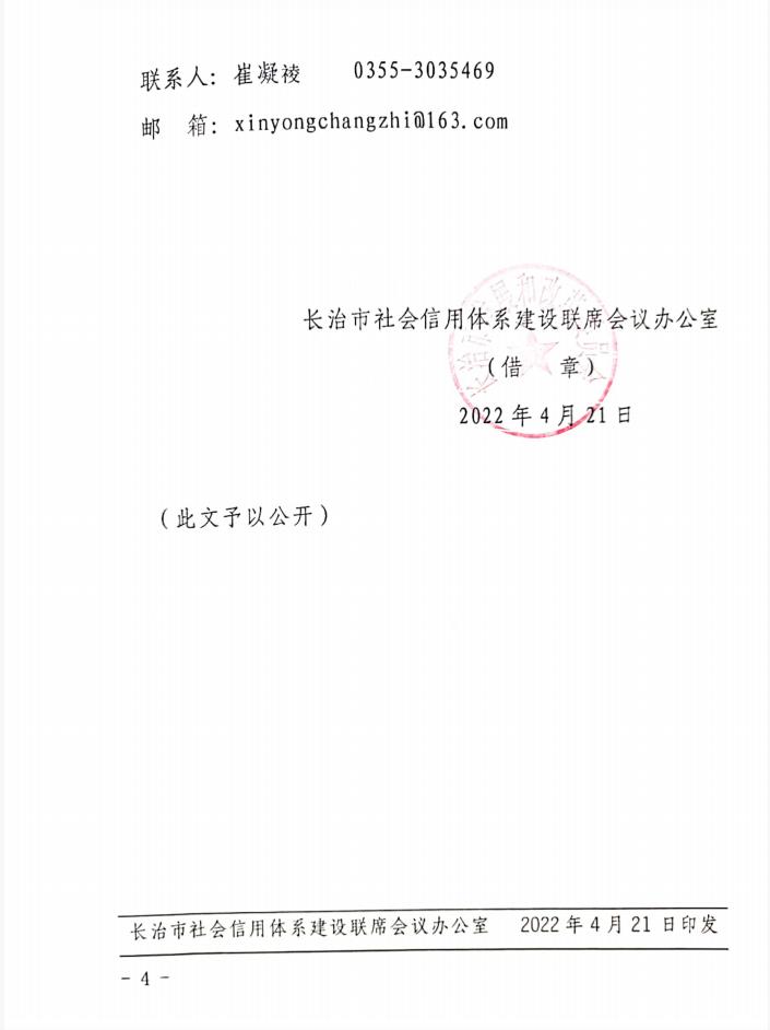 长治市信用体系建设联席会议办公室
