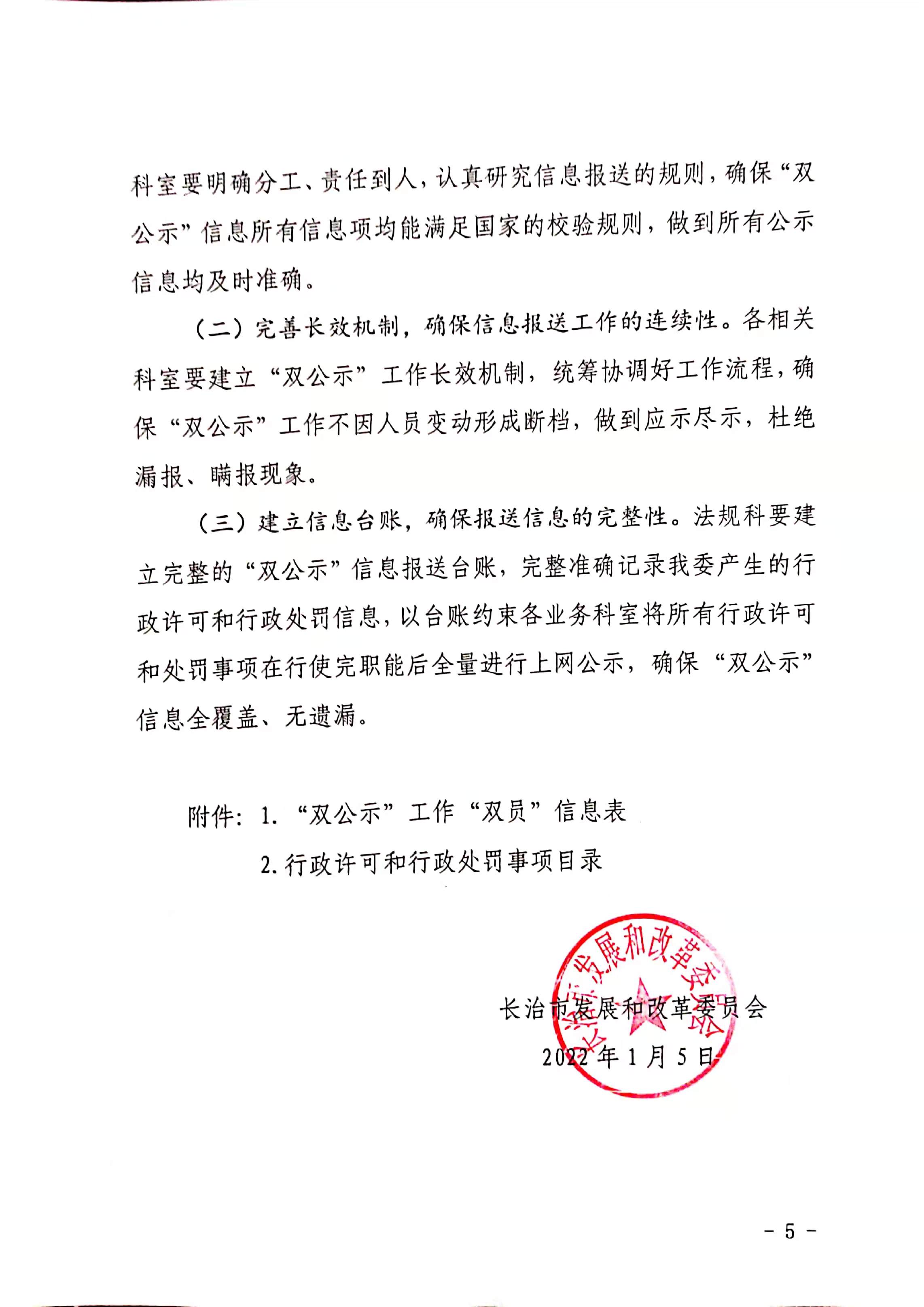 长治市发展和改革委员会“双公示”工作实施方案